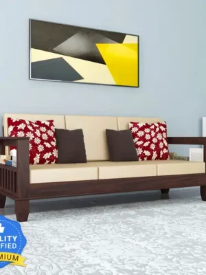 Kendalwood Furniture Solid Wood 3 Seater Wooden Sofa set for living Room Furniture Fabric 3 Seater Sofa (Finish Color – Walnut Finish, DIY(Do-It-Yourself))