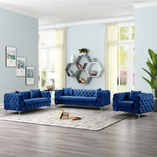 Flipkart Perfect Homes Diwan Couch Chaise Lounge for Home, Living Room, Drawing Room Solid Wood 3 + 2 + 1 Sofa Set (Blue, DIY(Do-It-Yourself)) quantity