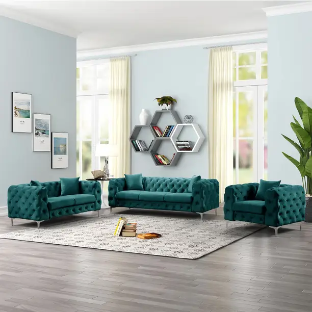 Flipkart Perfect Homes Diwan Couch Chaise Lounge for Home, Living Room, Drawing Room Solid Wood 3 + 2 + 1 Sofa Set (Green, DIY(Do-It-Yourself)) quantity