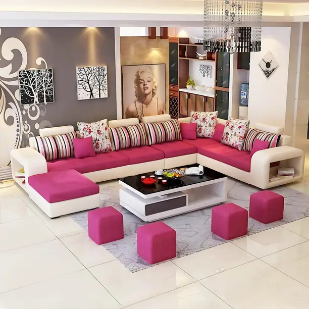 Homeify Carlo 9 Seater Fabric Sofa Set with 4-Puffy