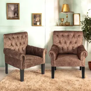 JYOTT Perfect Homes Arista Sheesham Wood Mid Century Accent Solid Wood Living Room Chair (Finish Color - Saddle Brown Suede Fabric, Pre-assembled) quantity