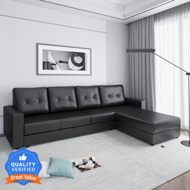 / JYOTT Perfect Homes Bruny RHS Leatherette 6 Seater Sofa (Finish Color – Black, DIY(Do-It-Yourself))