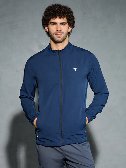Men Solid Slim Fit Mock Neck Jacket with TECHNOLITE