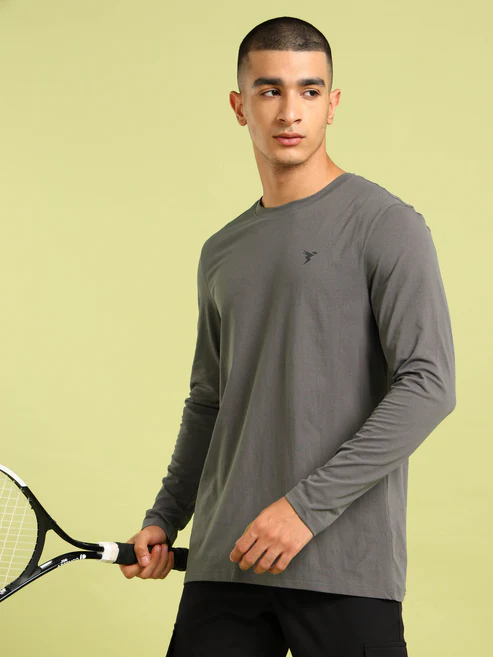 Men Solid Slim Fit Round Neck Sports T-shirt with COTFLEX